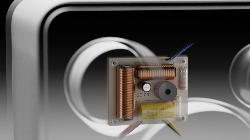 Additionally, the SE100 features a custom magnetic acoustically invisible grille, made from low-diffraction fabric, offering protection while maintaining full high-frequency extension.